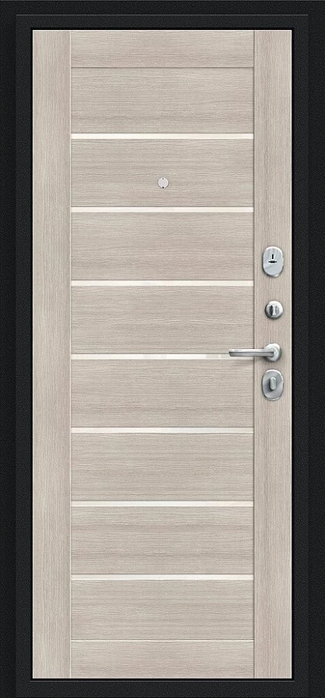 Надежная входная Дверь Браво Техно Букле черное/Cappuccino Veralinga премиум класса по цене 31 169 руб. Большая толщина стали защитит от проникновения в ваш дом, квартиру или коттедж. Используется очень качественная фурнитура: замки, цилиндры, ручки, защелки. Покрытие и отделка двери изготовлено под внимательным контролем производителя. Дверь имеет долгий срок службы и гарантию.