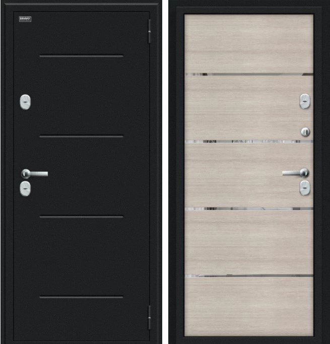 Надежная входная Дверь Браво Thermo Лайн Букле черное/Cappuccino Veralinga премиум класса по цене 47 669 руб. Большая толщина стали защитит от проникновения в ваш дом, квартиру или коттедж. Используется очень качественная фурнитура: замки, цилиндры, ручки, защелки. Покрытие и отделка двери изготовлено под внимательным контролем производителя. Дверь имеет долгий срок службы и гарантию.