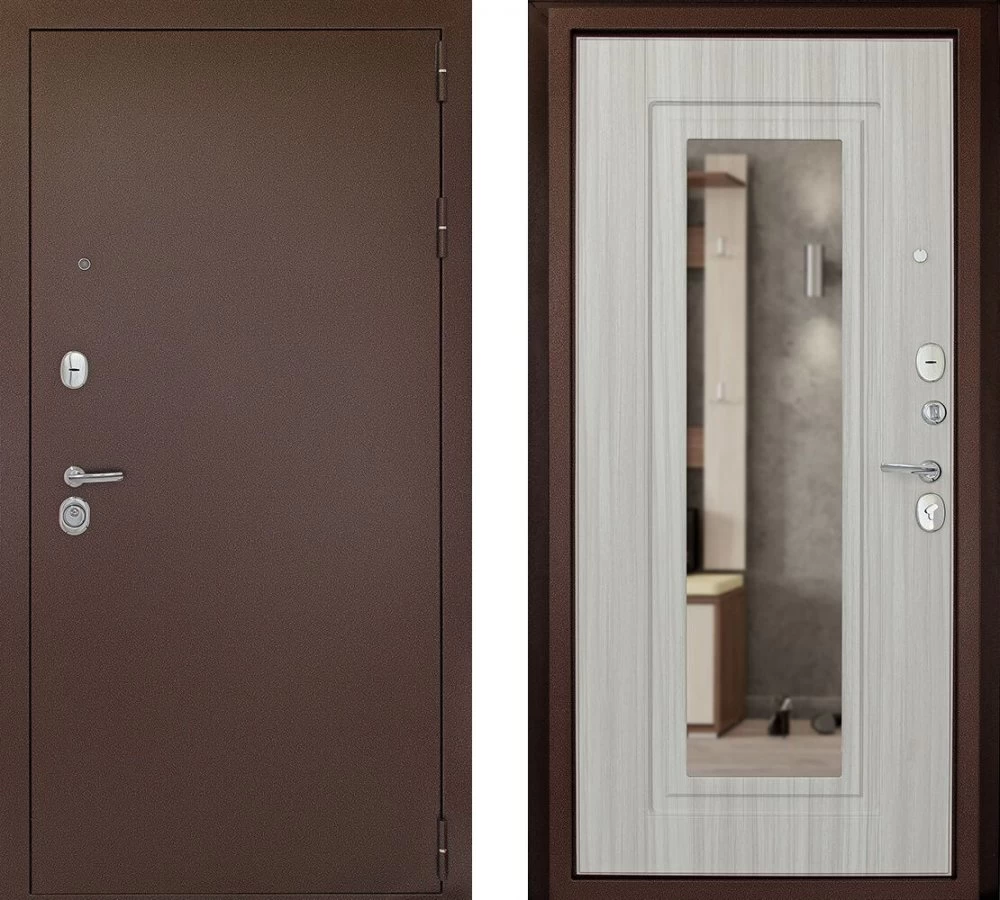 Надежная входная Дверь ДК Рубикон зеркало премиум класса по цене 32 169 руб. Большая толщина стали защитит от проникновения в ваш дом, квартиру или коттедж. Используется очень качественная фурнитура: замки, цилиндры, ручки, защелки. Покрытие и отделка двери изготовлено под внимательным контролем производителя. Дверь имеет долгий срок службы и гарантию.