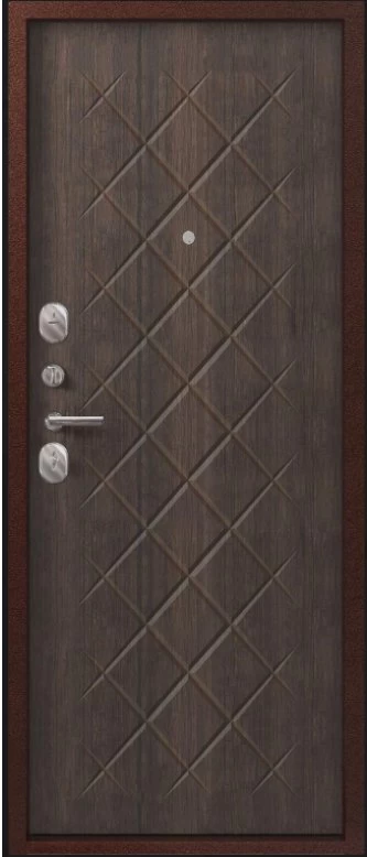 Надежная входная Дверь V-02 медь антик - венге премиум класса по цене 36 669 руб. Большая толщина стали защитит от проникновения в ваш дом, квартиру или коттедж. Используется очень качественная фурнитура: замки, цилиндры, ручки, защелки. Покрытие и отделка двери изготовлено под внимательным контролем производителя. Дверь имеет долгий срок службы и гарантию.